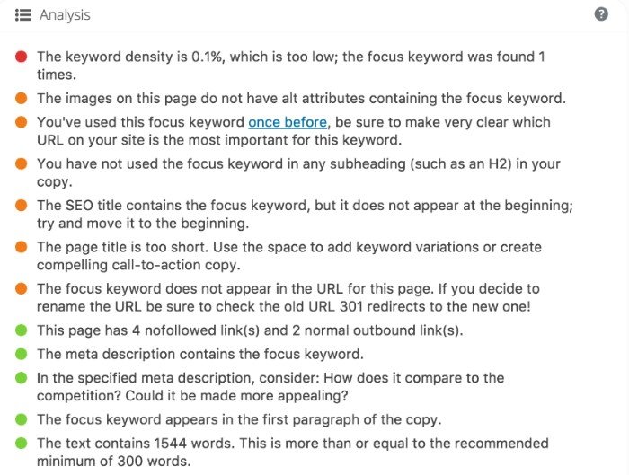 - You receive reports on each of your pages and posts. So if you need more keywords or if a page isn’t easy to read, it lets you know.